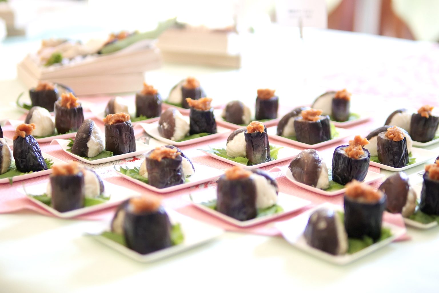 ③をラップに乗せて、ラップごと丸めて輪ゴムでとめる。蒸し器に並べ入れる。